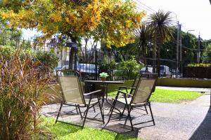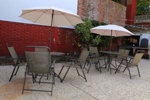 - Sillas con sombrillas en los jardines